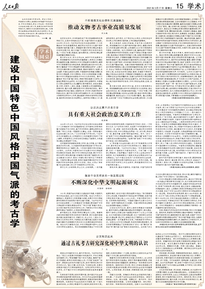 认识历史离不开考古学。考古工作是一项重要文化事业,能够展示和构建中华民族历史、中华文明瑰宝;考古工作也是一项具有重大社会政治意义的工作,能够为弘扬中华优秀传统文化、增强文化自信提供坚强支撑。本期学术版围绕如何做好考古和历史研究工作,如何更好认识源远流长、博大精深的中华文明,约请专家学者进行探讨交流。