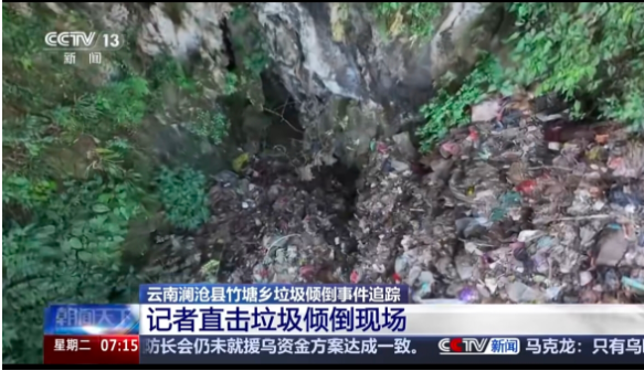 此前网友的曝光视频显示,在距离澜沧拉祜族自治县城33公里处,通过无人机找到了这处垃圾倾倒点。现场异臭浓烈刺鼻,令人难以靠近,倾倒的垃圾规模庞大。更令人忧心的是,这些垃圾下方是一个深邃的天坑溶洞。视频里网友表示,“垃圾倾斜而下,可能有八层楼高,溶洞直接被塞满”。