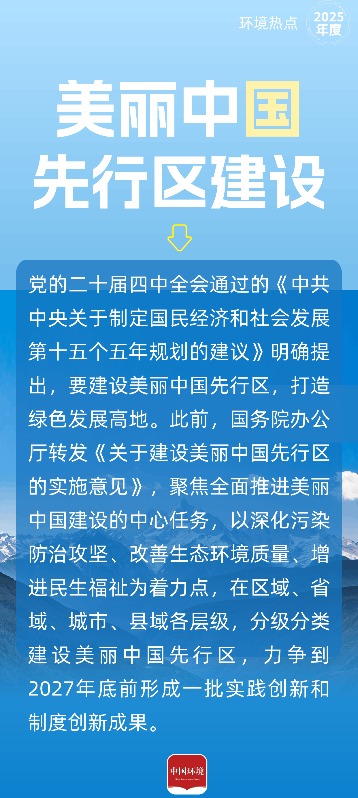 “十四五”时期是我国生态文明建设向纵深推进的关键五年。五年来,美丽中国建设迈出重大步伐,经济社会发展全面绿色转型扎实推进、成效显著。2025年,作为“十四五”收官之年,绿色已成为高质量发展的鲜明底色,生态文明的笔触愈发遒劲有力,人与自然和谐共生的画卷持续铺展。党的二十届四中全会进一步明确提出“加快经济社会发展全面绿色转型,建设美丽中国”,为生态文明建设注入新的动力。