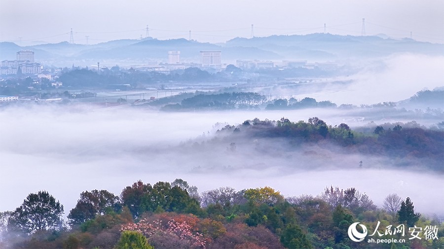 人民网六安12月24日电 (郭昊)近日,安徽省六安市舒城县,清晨的万佛湖晨雾缭绕,山峦亭阁在雾中若隐若现,环湖道路与树木错落其间,勾勒出一幅灵动的水墨画卷。