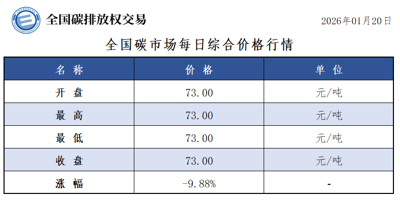 【CEA】全国碳市场每日综合价格行情及成交信息20260120