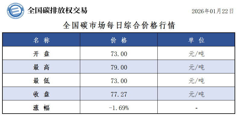 【CEA】全国碳市场每日综合价格行情及成交信息20260122