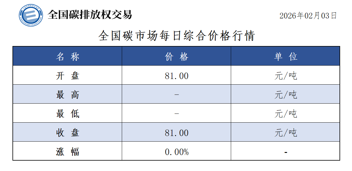【CEA】全国碳市场每日综合价格行情及成交信息20260203
