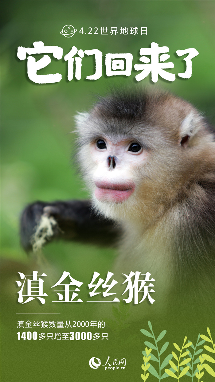 编者按:近年来,得益于我国生态文明建设力度的持续加大,生态环境质量持续改善,不少隐匿已久的珍稀动物“集体回归”。正值第52个世界地球日,人民网推出策划“它们回来了”,号召全社会珍爱地球家园,与万物和谐共生。