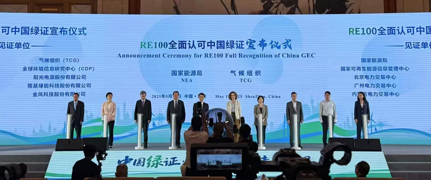 5月12日,国家能源局、气候组织在深圳举办仪式宣布RE100全面认可中国绿证 摄影:韩舒淋