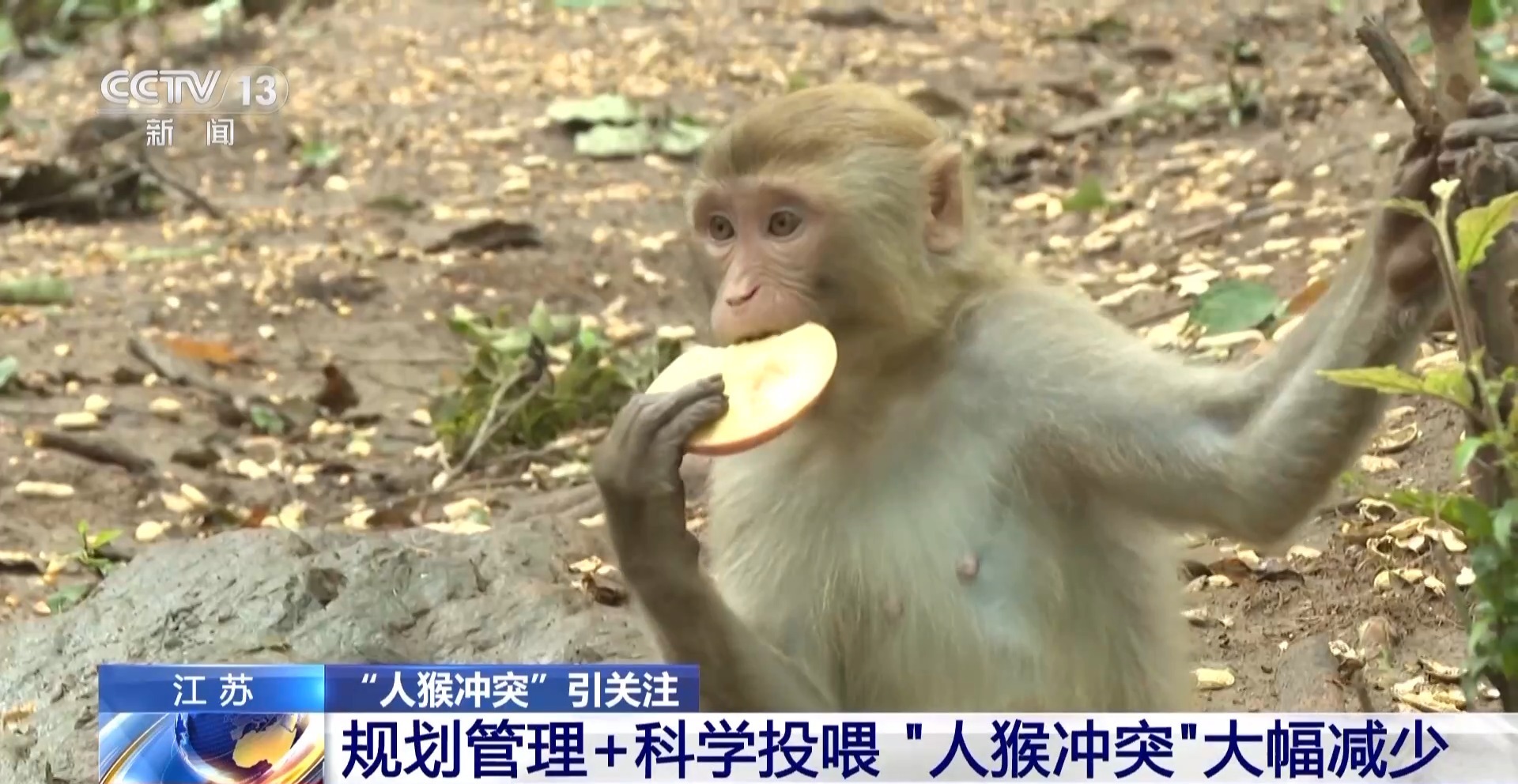 茅山森林世界副总经理 王明明:我们当时投喂的初衷,主要是考虑在冬季山上食物比较匮乏的时候,能够解决猴子基本的温饱,这样也可以避免它们抢游客的食物。