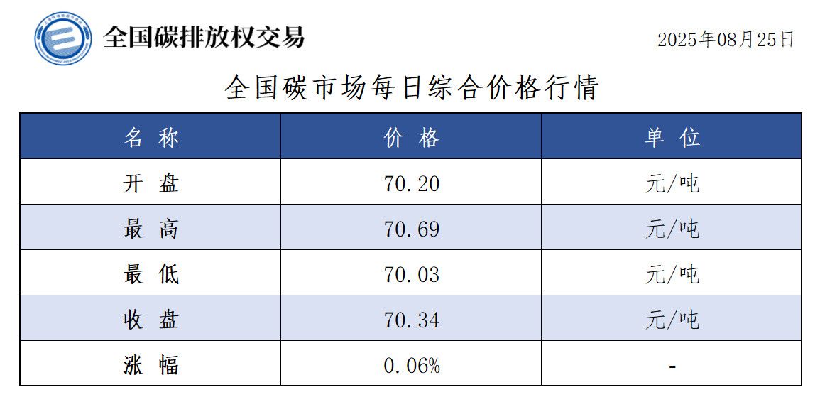【CEA】全国碳市场每日综合价格行情及成交信息20250825