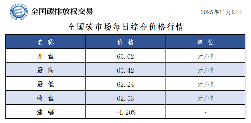 【CEA】全国碳市场每日综合价格行情及成交信息20251124