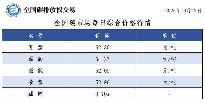 【CEA】全国碳市场每日综合价格行情及成交信息20251022