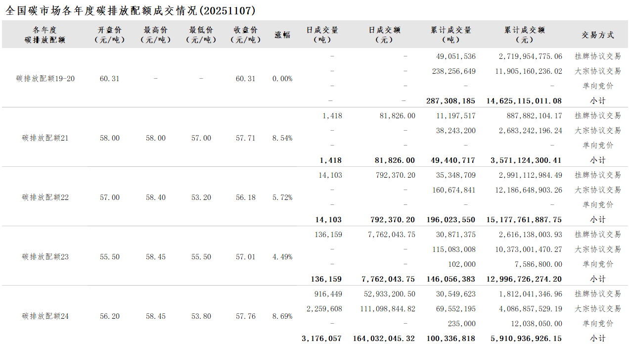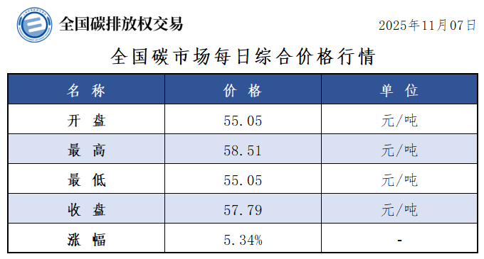 【CEA】全国碳市场每日综合价格行情及成交信息20251107