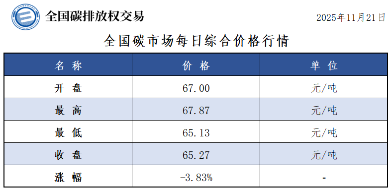 【CEA】全国碳市场每日综合价格行情及成交信息20251121
