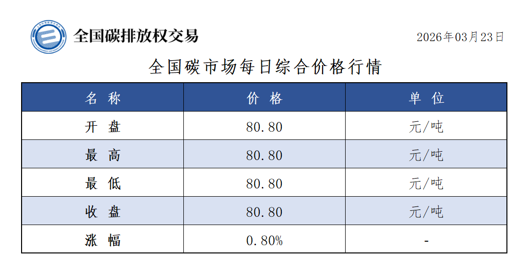 【CEA】全国碳市场每日综合价格行情及成交信息20260323
