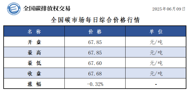 【CEA】全国碳市场每日综合价格行情及成交信息20250609
