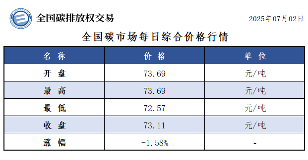 【CEA】全国碳市场每日综合价格行情及成交信息20250702