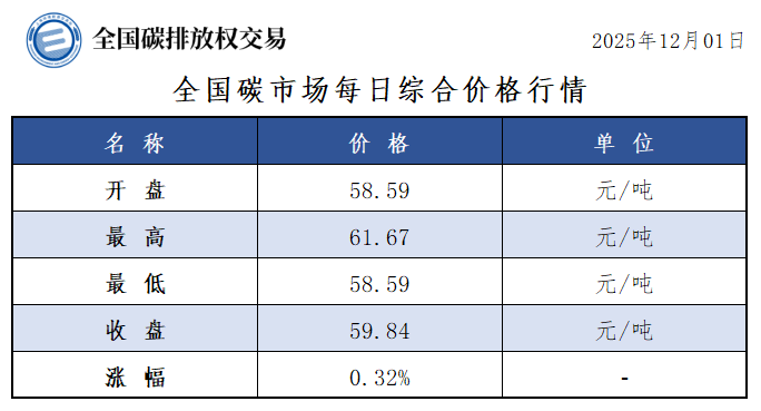 【CEA】全国碳市场每日综合价格行情及成交信息20251201
