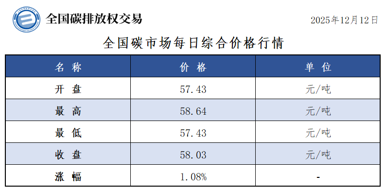 【CEA】全国碳市场每日综合价格行情及成交信息20251212