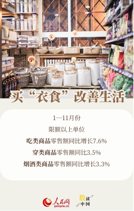 经济数据的变化,藏着百姓的生活图景。国家统计局、国家税务总局公布的数据显示:前11个月,有人添了“新三件”,有人奔赴山海,有人为健康活力买单……一起来看看,今年大家爱买啥!